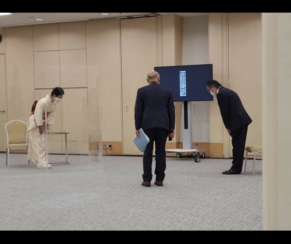 第38回産経国際書展に於いて産経国際書会理事長賞を受賞しました。高円宮妃殿下久子様との懇談をし、記念撮影迄して頂き